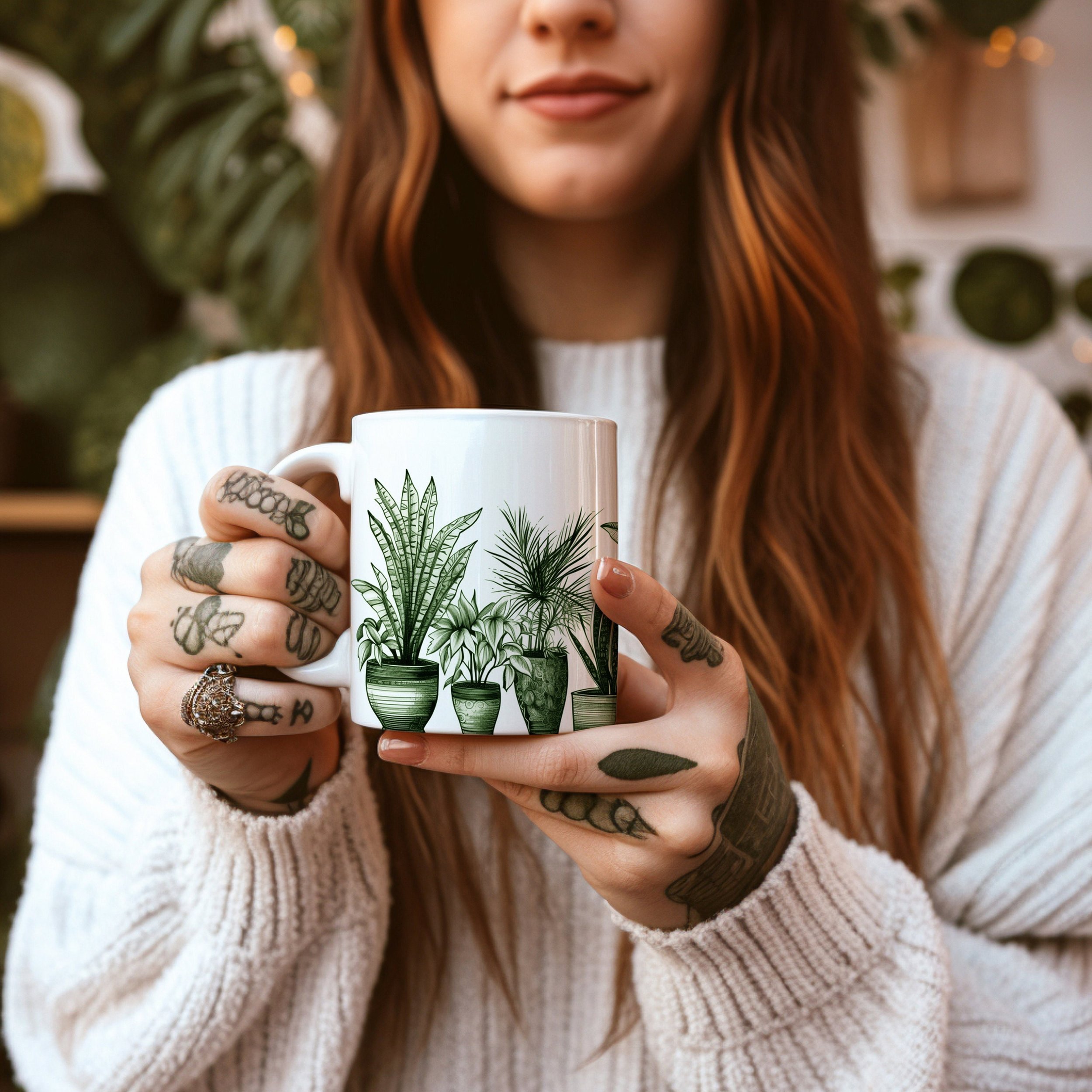 Warm-up with a nice cuppa out of this customized ceramic coffee mug inspired by bohemian living and indoor plants. A great gift for plant lovers, coffee lovers, or tea (chai) lovers!